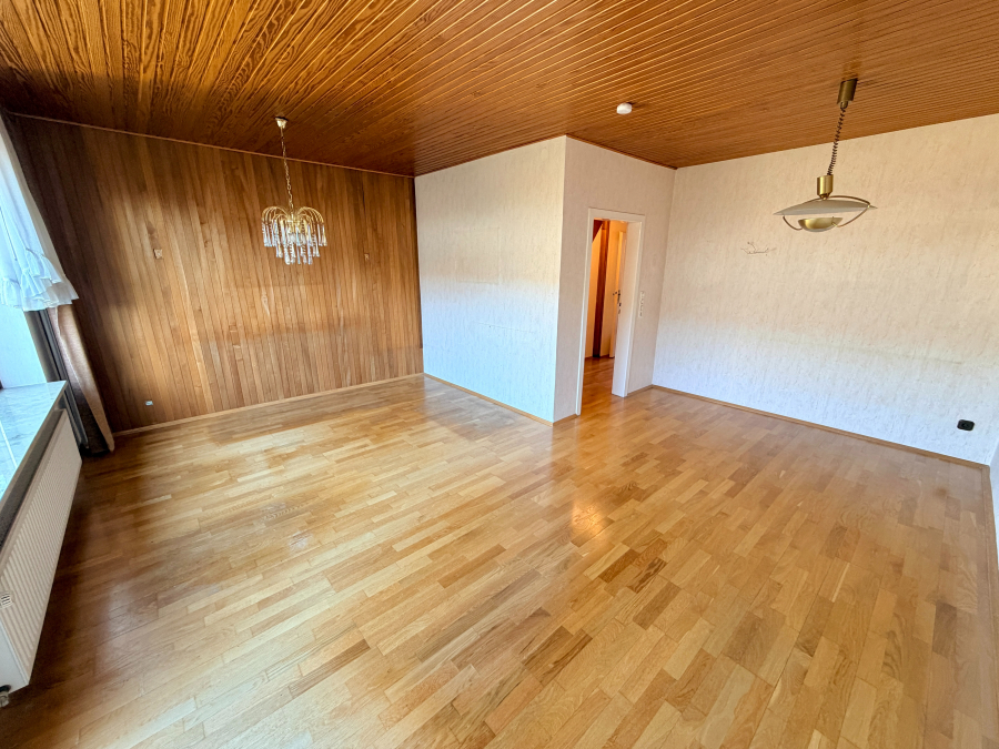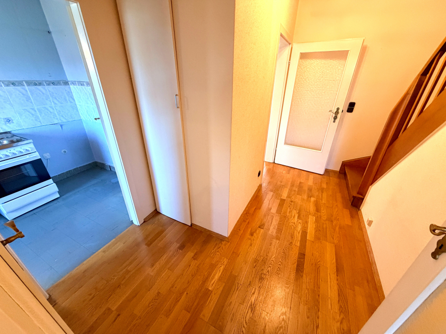 Im Obergeschoss befinden sich drei gut geschnittene Zimmer, die flexibel als Schlaf-, Kinder- oder Arbeitszimmer genutzt werden können. Das Tageslichtbad ist mit einer Badewanne ausgestattet und entspricht dem Baujahr. Die Warmwasserversorgung im Badezimmer und in der Küche erfolgt über einen elektrischen Durchlauferhitzer. Über eine Metallwendeltreppe ist der ausgebaute Dachboden erreichbar, der mit drei Velux-Dachflächenfenstern (2017) ausgestattet ist und zusätzliches Nutzungspotenzial bietet.