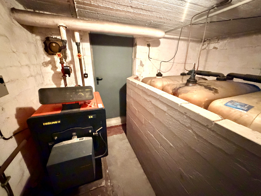 Der Keller umfasst einen Vorraum, einen separaten Kellerraum, der als Wasch- und Lagerraum genutzt wurde, sowie den Heizungsraum mit einer Ölheizung aus dem Jahr 1996. Die Garage direkt vor dem Haus rundet das Angebot ab.